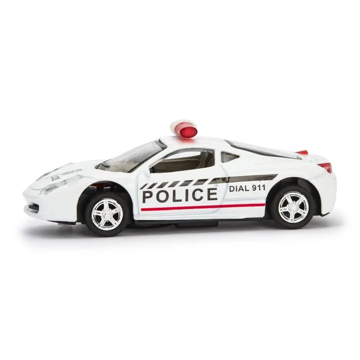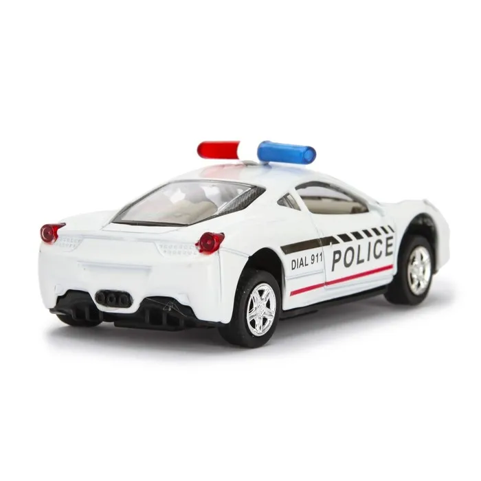 Чтобы привести машину в движение, откатите её вперёд или назад и резко отпустите, полицейский спорткар поедет под действием инерционного механизма, быстро разовьёт скорость и достигнет намеченной цели.