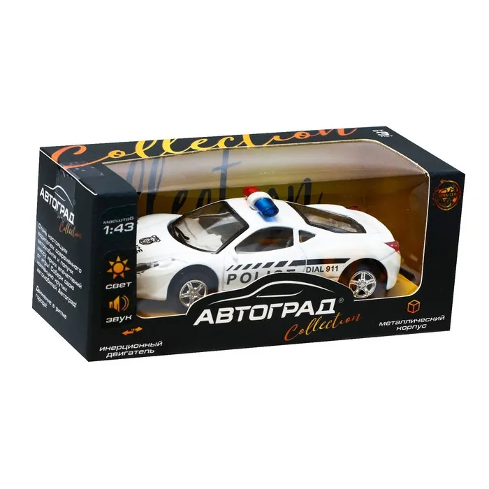 Машинка металлическая «Полиция», инерционная, свет и звук, масштаб 1:43 — Характеристики