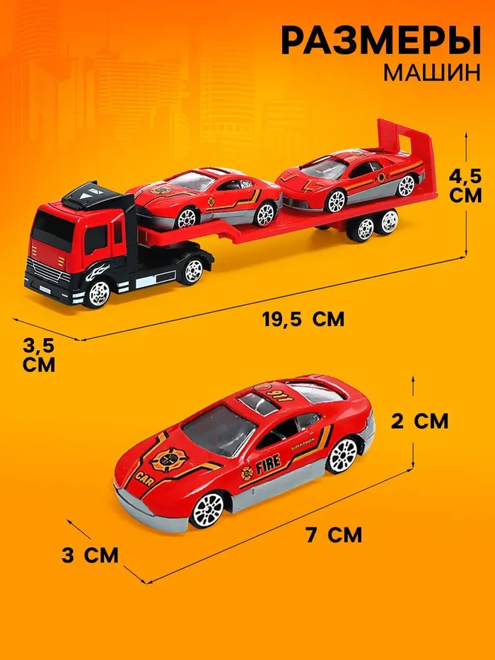 - Размер автовоза с прицепом: 19,5 × 3,5 × 4,5 см.