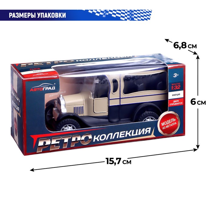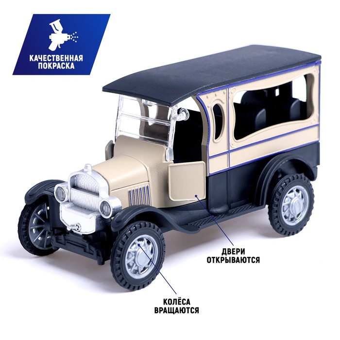 Машинка металлическая «Ретро», инерционная, 1:32, открываются двери, цвет бежевый — Характеристики