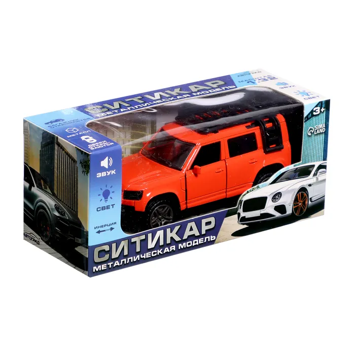 Машинка металлическая «Ситикар», инерционная, 1:32, открываются двери, звуковые и световые эффекты, цвет оранжевый — Характеристики