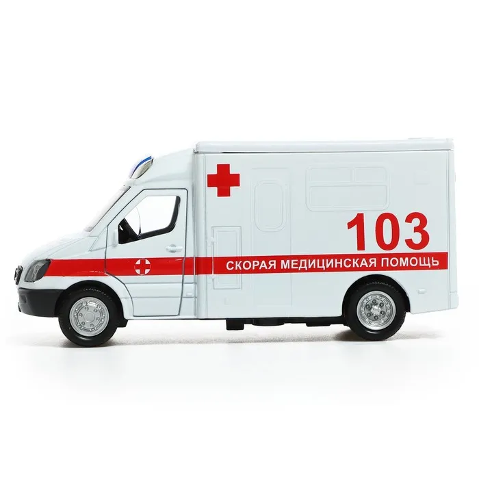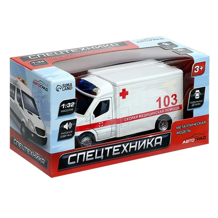 Машинка металлическая «Скорая», 1:32, свет и звук, инерция, открываются двери — Характеристики