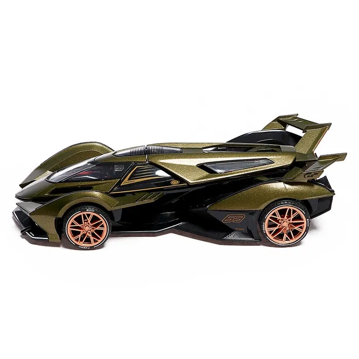 - Современный дизайн – агрессивный облик, аэродинамические формы и золотые диски придают машинке стиль настоящего суперкара.