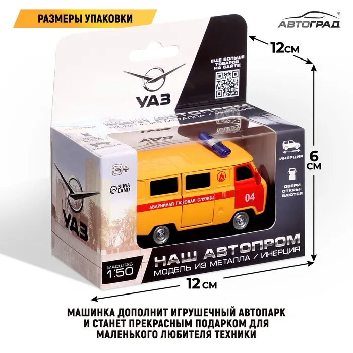 Машинка металлическая «УАЗ 3962. Газовая Служба», инерция, 1:50 — Характеристики