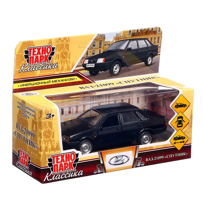 Машинка металлическая ВАЗ-21099, ретро - модель «СПУТНИК», открываются двери, багажник, инерция, 12 см, чёрный — Характеристики