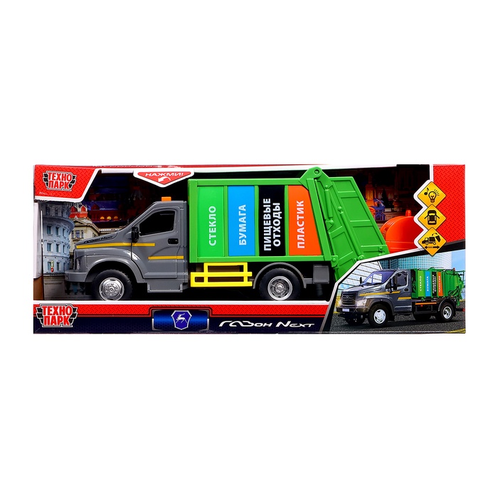 Машинка - мусоровоз «ГАЗОН NEXT» 22 см, инерция, свет, звук — Характеристики