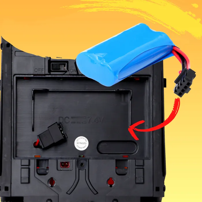 - Автомобиль работает от аккумулятора 14500 / 500 mAh — 7.4 V (есть в комплекте).