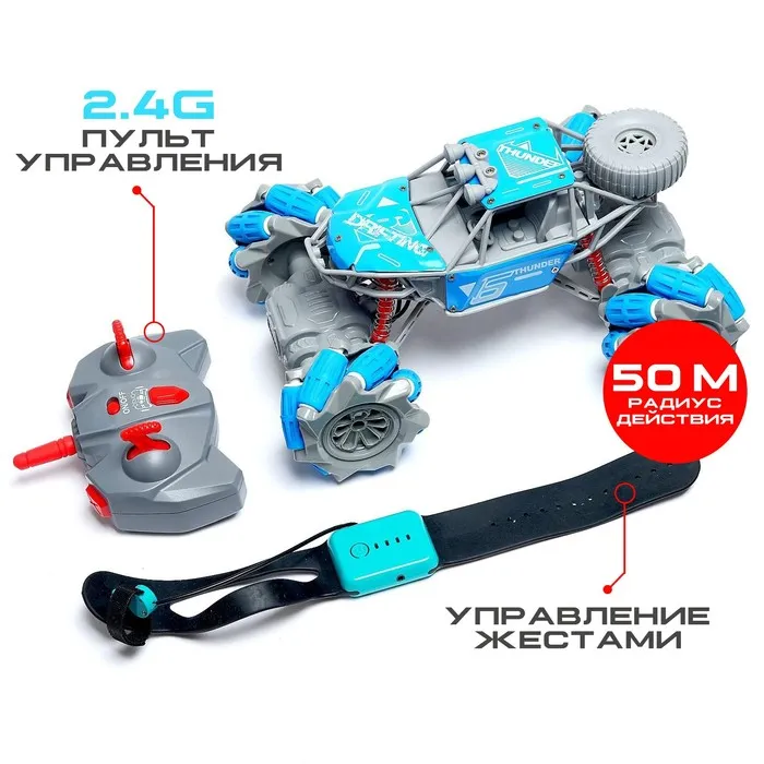 Машинка на пульте управления «Джип-акробат», радиоуправление, 4WD, управление жестами, работает от аккумулятора, цвет синий — Характеристики