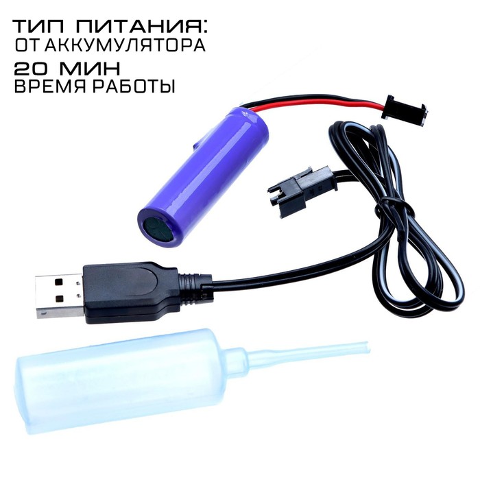 - Комплект для старта: в коробке есть все для начала гонок: машинка с аккумулятором, USB-кабель для зарядки, пульт управления, жидкость для дыма и инструкция. Для пульта требуются 2 батарейки АА.