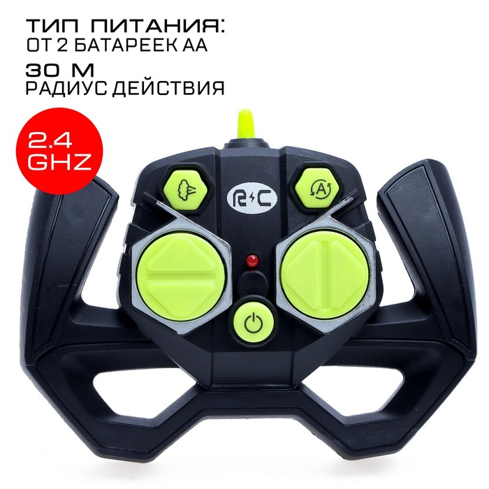 - Маневренность и скорость: радиоуправление на расстоянии до 30 метров обеспечивает полный контроль. Машина движется вперёд, назад, влево и вправо, выполняя сложные развороты на месте.