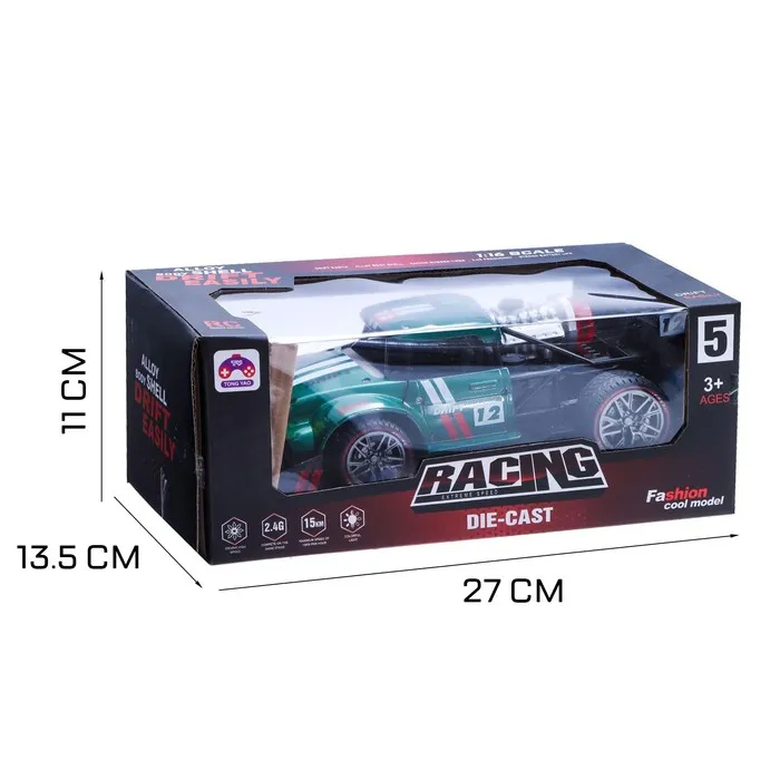 Заряда аккумулятора хватает на 20 минут активной игры. Компактный размер 21,5 см (масштаб 1:16) удобен для треков в комнате. Яркий зелёный цвет и агрессивный дизайн хот-рода понравятся мальчикам от 3 лет и станут отличным подарком на праздник.