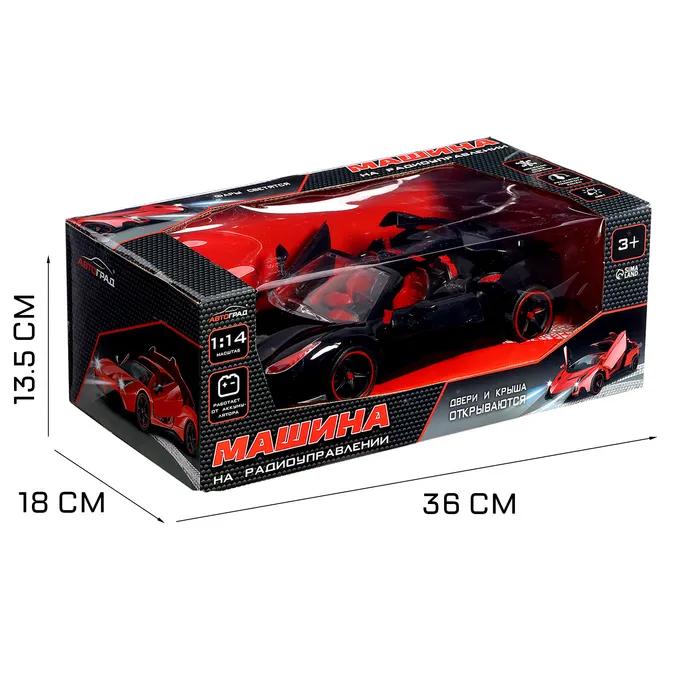 Машинка на пульте управления «Купе», радиоуправление, 1:14, открываются двери и крыша, работает от аккумулятора, цвет чёрный — Характеристики