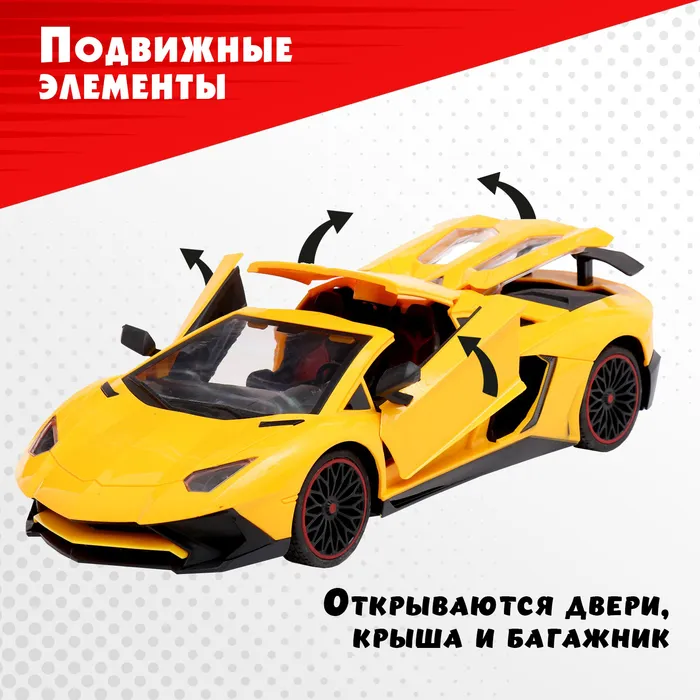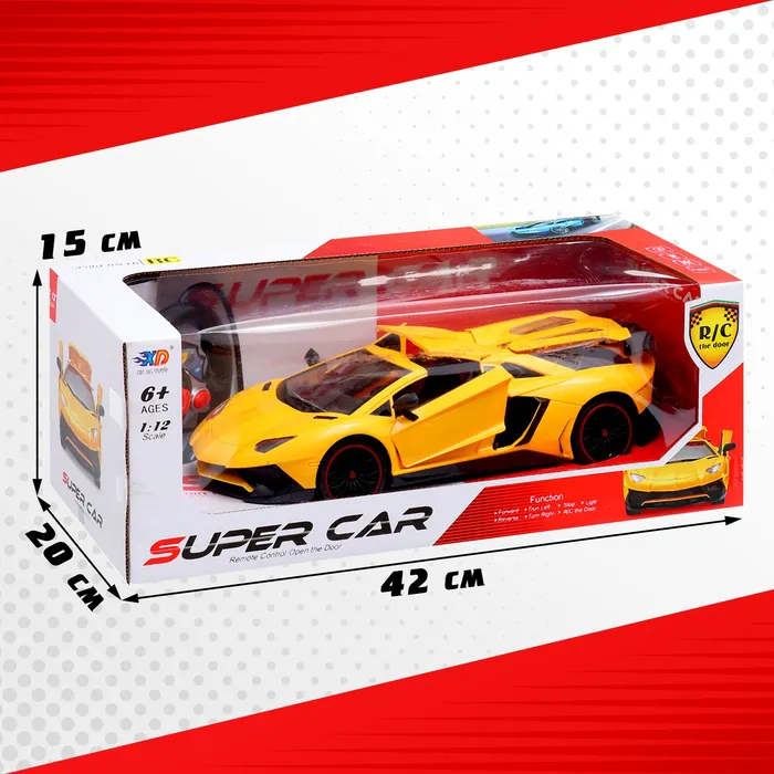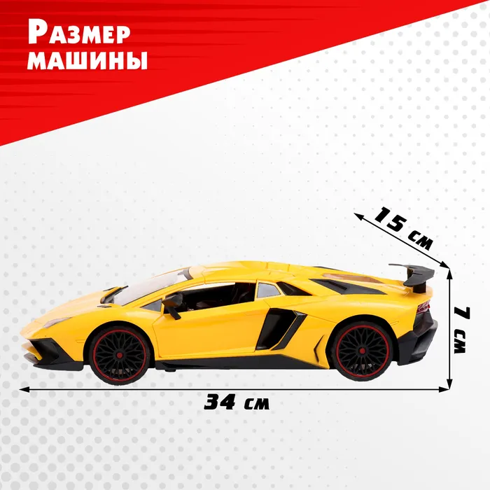 Машинка на пульте управления «Ламбо», радиоуправление, 1:12, открываются двери, работает от аккумулятора, цвет жёлтый — Характеристики