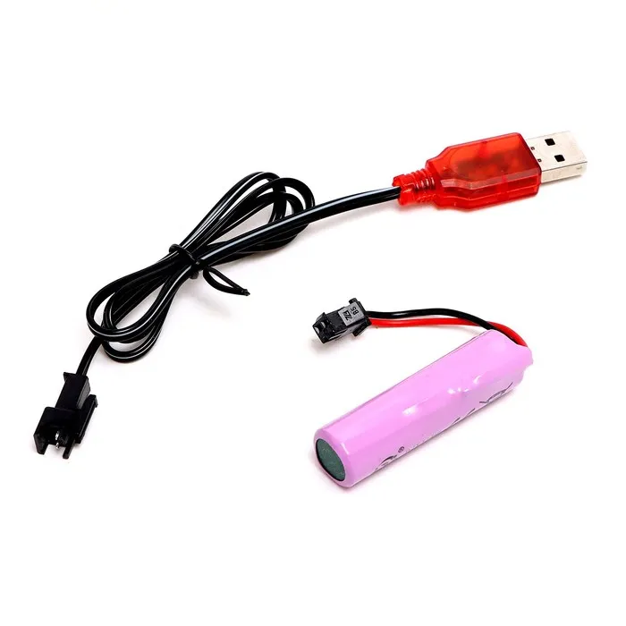 - Машина работает от аккумулятора 3,7 В (в комплекте). Провод для зарядки в комплекте.