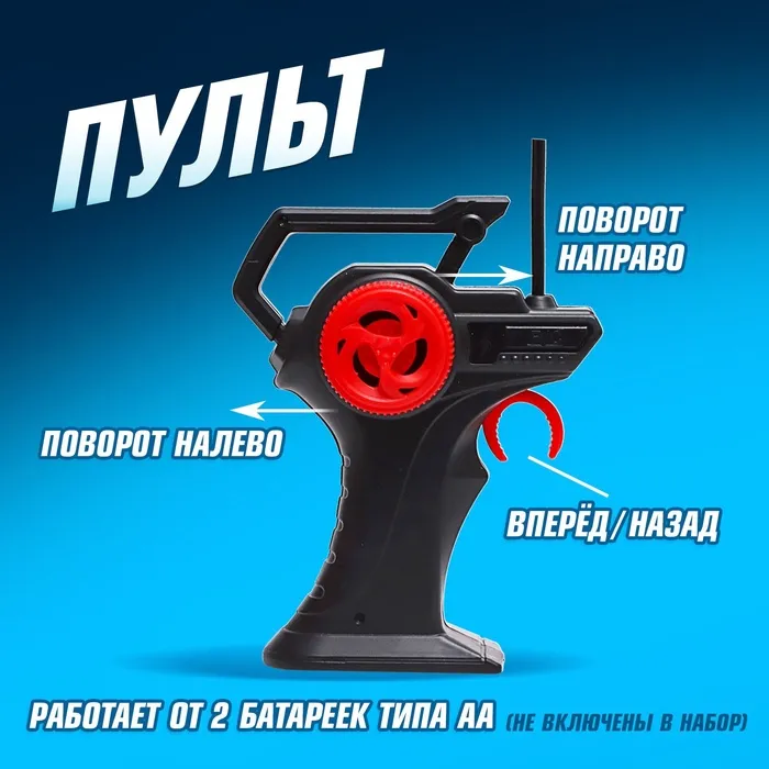 - Дальность действия пульта: 20 м. Работает от 2 батареек типоразмера AA (нет в комплекте).