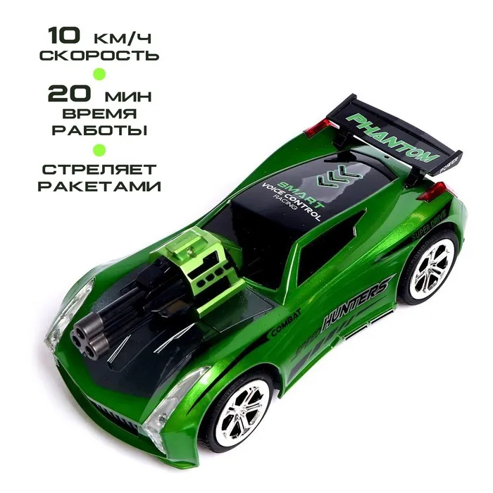 Машинка на пульте управления «Турбо Дрифт», радиоуправление, голосовое управление, стреляет ракетами, цвет зеленый — Характеристики