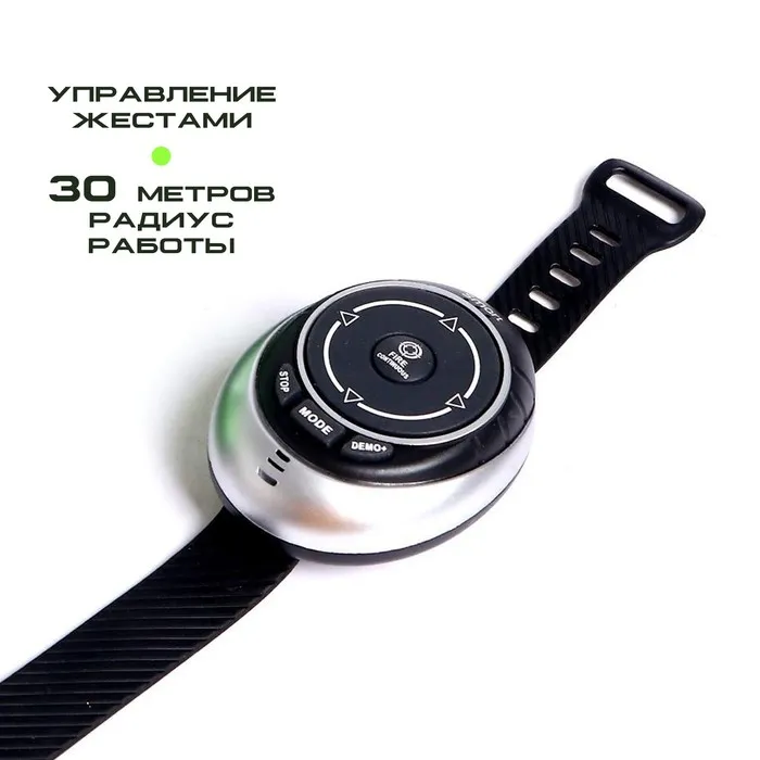 - 30 метров свободы: браслет ловит сигнал через стены и препятствия. Устрой погоню по квартире, двинь машинку в соседнюю комнату или управляй ей с балкона — связь не прервётся.
