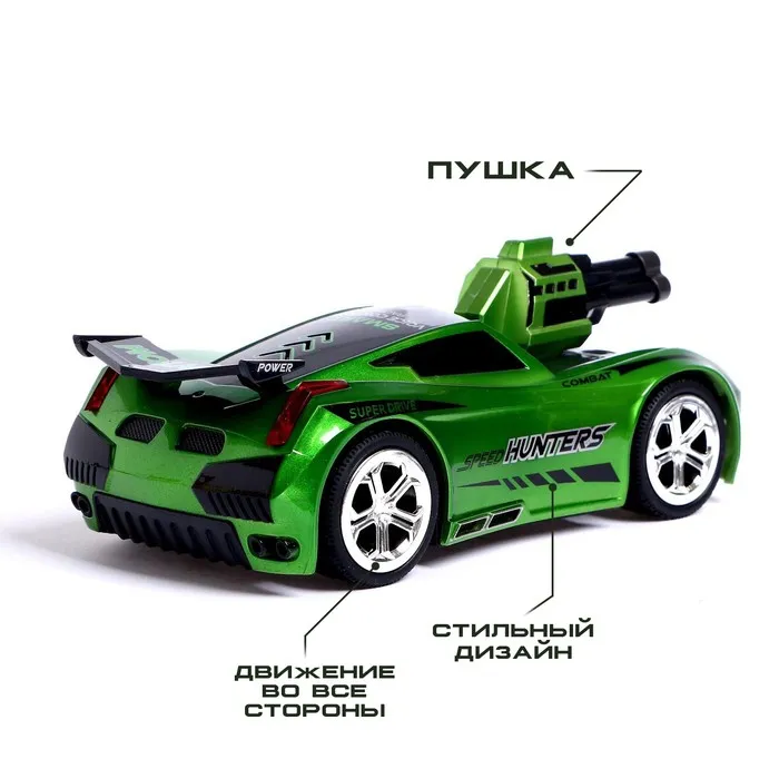 Гонки с ракетным драйвом! Радиоуправляемая машинка «Турбо Дрифт» — зелёный болид, который слушается голоса, стреляет ракетами и оставляет соперников позади. Для мальчишек от 6 лет — это не просто игрушка, а целый боевой трек с эффектами!