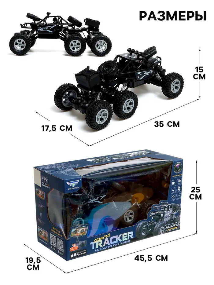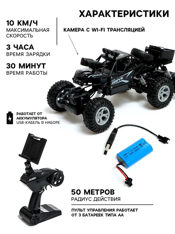 Машинка на пульте управления «Вездеход» с камерой, полный привод, Wi-fi, элементы из металла, цвет черный — Характеристики