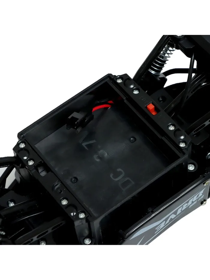 - Чёрный цвет придаёт вездеходу стильный и агрессивный внешний вид, который оценят юные любители техники.