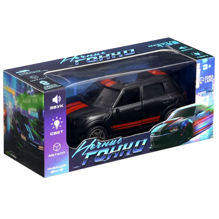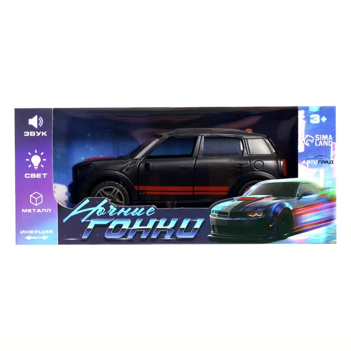Машинка «Ночные гонки», металлическая, инерция, открываются двери, световые и звуковые эффекты, 1:32, цвет чёрный — Характеристики