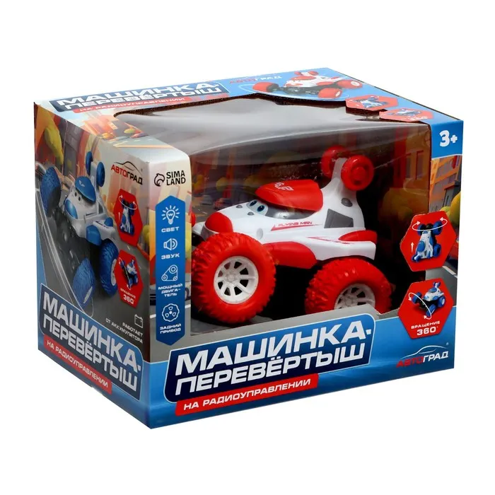 Машинка радиоуправляемая «Перевёртыш» — настоящий зверь среди автомобилей, ведь способна преодолеть любые препятствия! Она с лёгкостью поднимется на задние колёса и проедет там, где не сможет проехать ни один автомобиль. С машинкой «Перевёртыш» можно играть дома и брать её с собой на прогулку. Ребёнок сможет не только увлекательно провести время за игрой, но также придумать новые сюжеты, развить свою фантазию и воображение. Реалистичный дизайн и проработанные детали сделают игру динамичнее и интереснее.