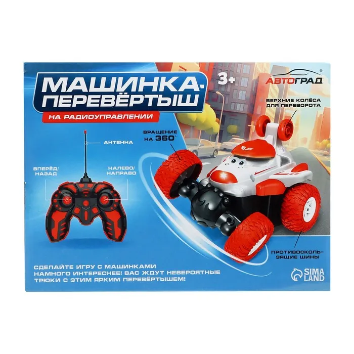 Машинка радиоуправляемая «Перевёртыш» — настоящий зверь среди автомобилей, ведь способна преодолеть любые препятствия! Она с лёгкостью поднимется на задние колёса и проедет там, где не сможет проехать ни один автомобиль. С машинкой «Перевёртыш» можно играть дома и брать её с собой на прогулку. Ребёнок сможет не только увлекательно провести время за игрой, но также придумать новые сюжеты, развить свою фантазию и воображение. Реалистичный дизайн и проработанные детали сделают игру динамичнее и интереснее.