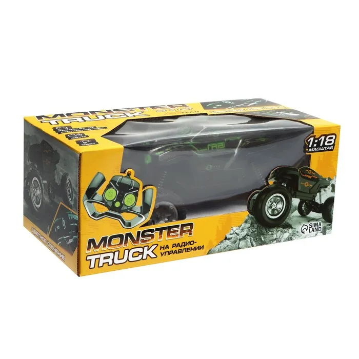 Машинка радиоуправляемая, «Джип Монстр трак», на пульте управления, 1:18, световые и звуковые эффекты, на аккумуляторе, цвет зелёный — Характеристики