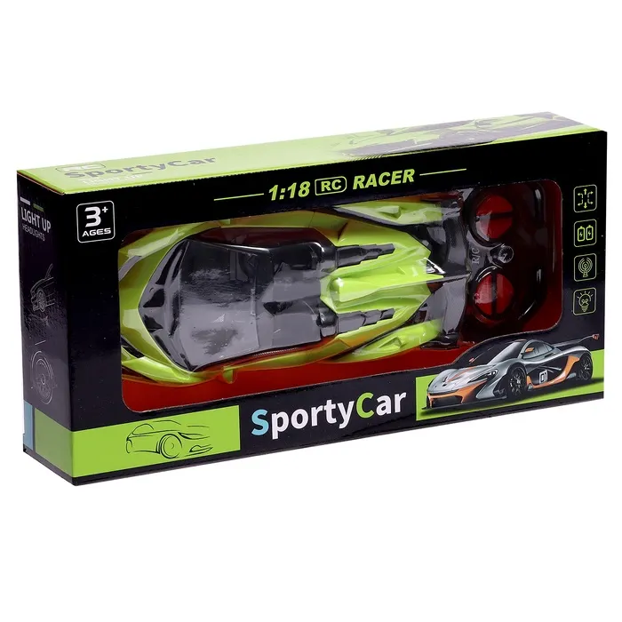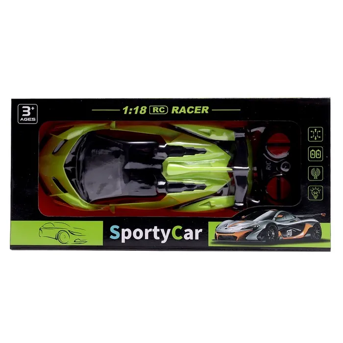 Машинка радиоуправляемая «СпортКар», аккумулятор, на пульте управления, световые эффекты, цвет зеленый, 1:18