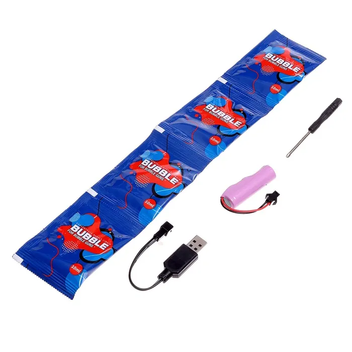 - Чтобы игрушка стреляла пузырями, на 1 пакетик потребуется 20 мл воды.