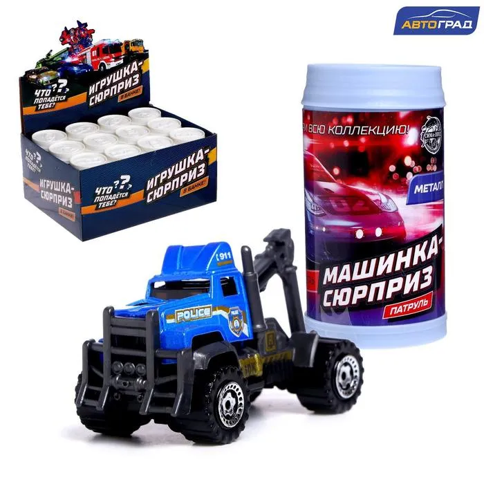 Машинка-сюрприз в банке, «Патруль», металлическая, масштаб 1:64, МИКС — Характеристики