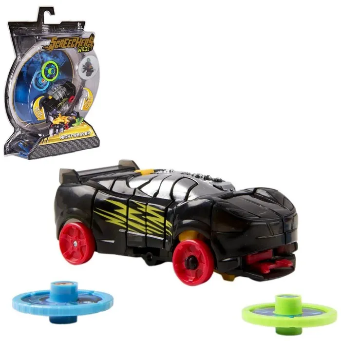 Машинка-трансформер «Дикие Скричеры: Найтвивер» — уникальная игрушка, которая объединяет элементы машинки и волчка, превращая игру в настоящее шоу трансформации.