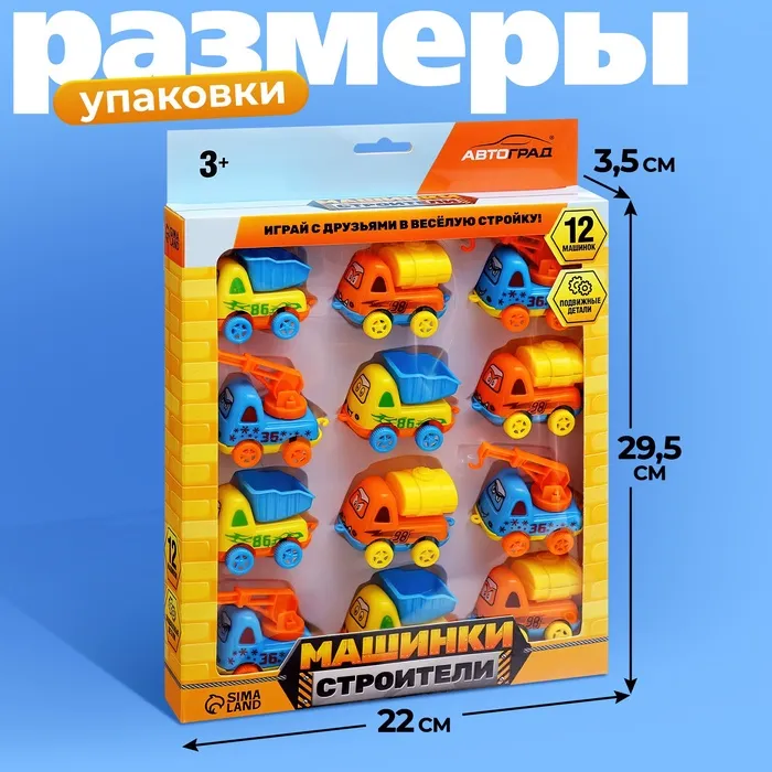 Машинки детские «Строители», набор 12 шт., подвижные детали — Характеристики