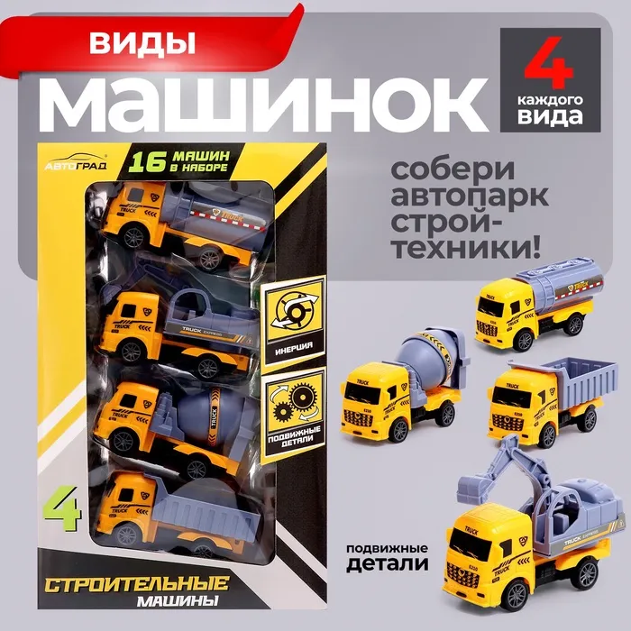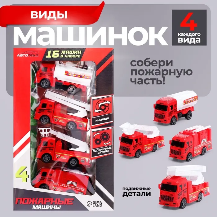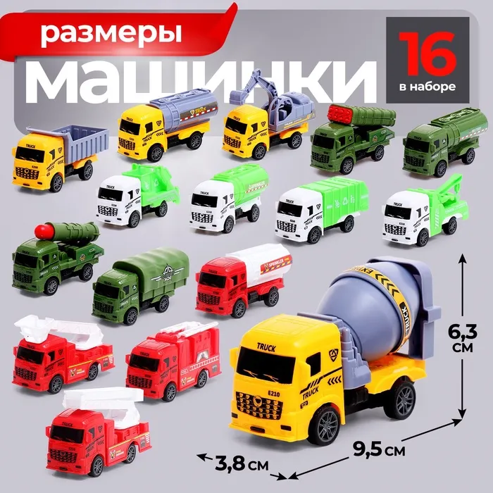 Машинки инерционные «Супер», набор 16 шт., подвижные элементы — Характеристики