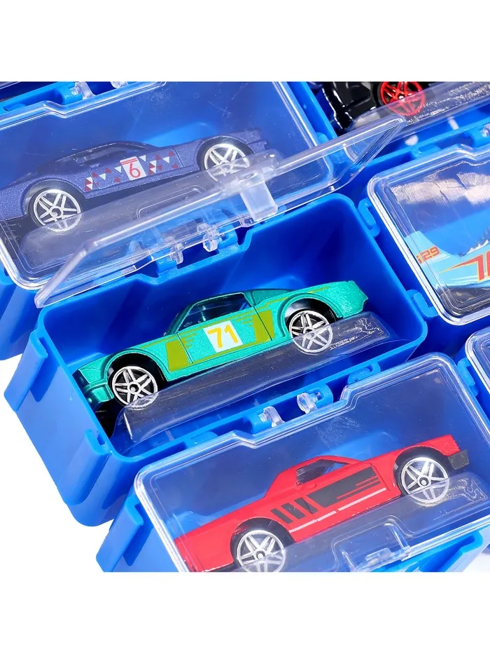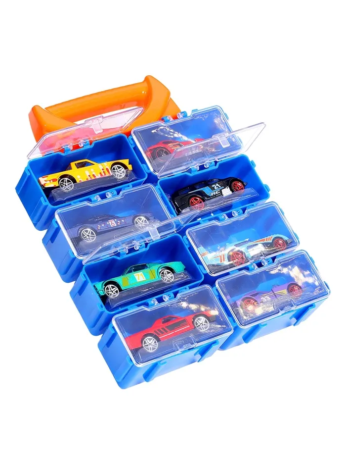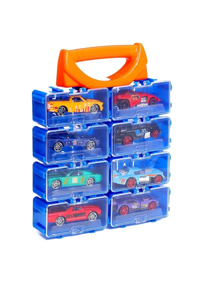 - Прочный кейс с ручкой – удобно носить с собой и хранить машинки.