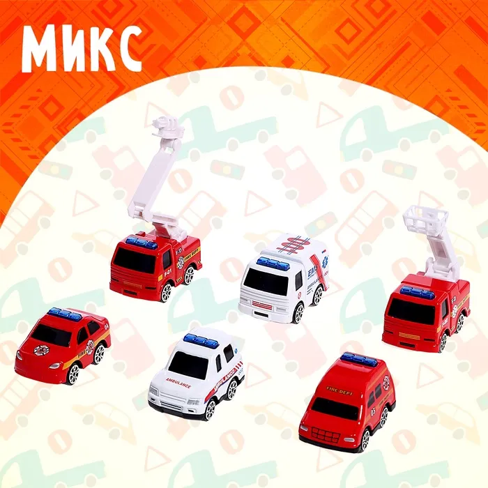 Собери свою коллекцию мини-машинок! Набор из 6 металлических машинок «Мини» – это яркий выбор для маленьких автолюбителей. Разноцветные модели такси и скорой помощи подарят часы увлекательной игры.