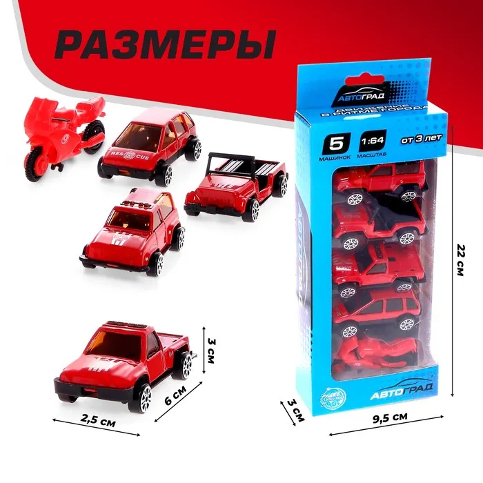 Машинки металлические «Пожарная служба», 5 шт. — Характеристики