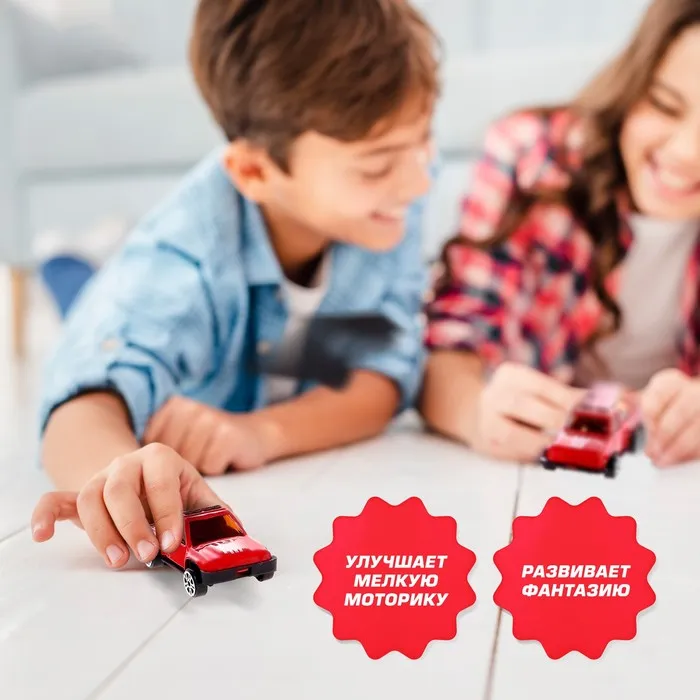 - Кузов машинок выполнен из металла. Все остальные элементы из пластика.