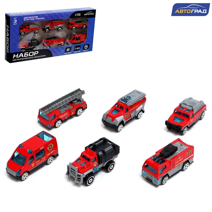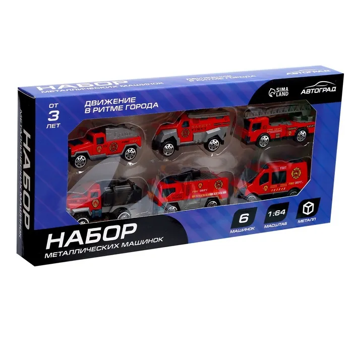 Машинки металлические «Пожарная служба», 6 шт., масштаб 1:64 — Характеристики
