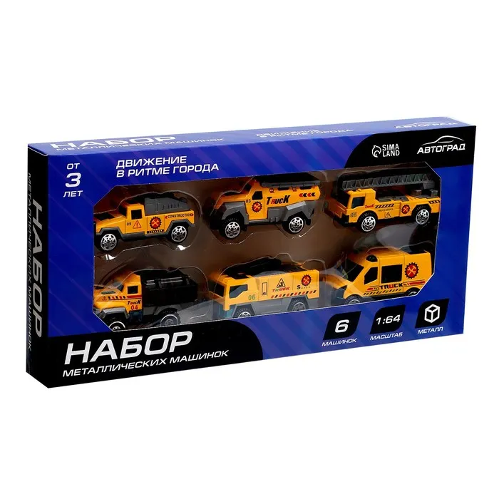 Машинки металлические «Строительная техника», набор 6 шт., масштаб 1:64 — Характеристики