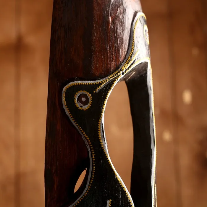 Почувствуйте себя настоящим аборигеном, устройте тематическую вечеринку в кругу родных и близких, украсьте интерьер соответствующими аксессуарами и не забудьте про наряд. И кстати… такая маска «Абориген», 100×15×6 см, дерево будет как раз в тему! Она выполнена из натурального экологически чистого дерева, каждая деталь, каждый рубец выполнялся вручную индонезийскими ремесленниками. Не у каждого найдется такая уникальная маска! Ведь ее можно повышать на стену, словно панно, привнеся нотки экзотики в Ваш дом.
