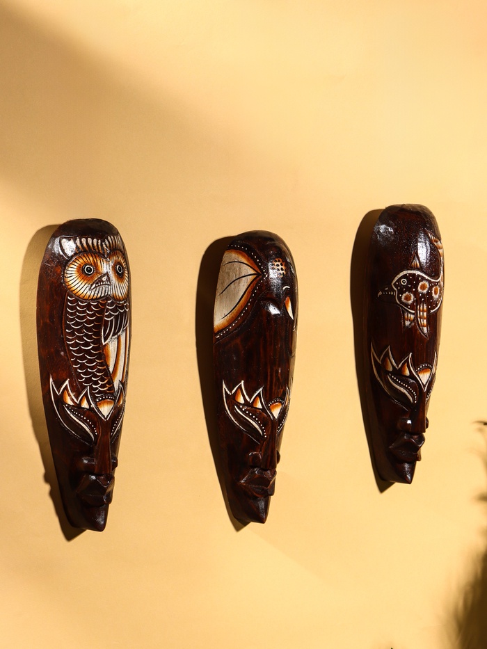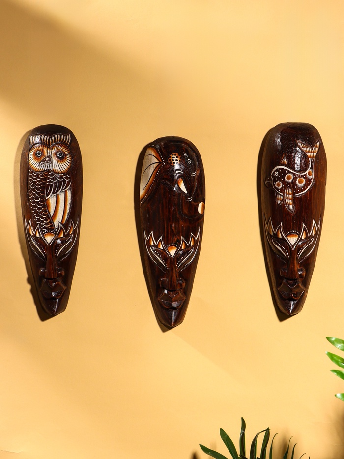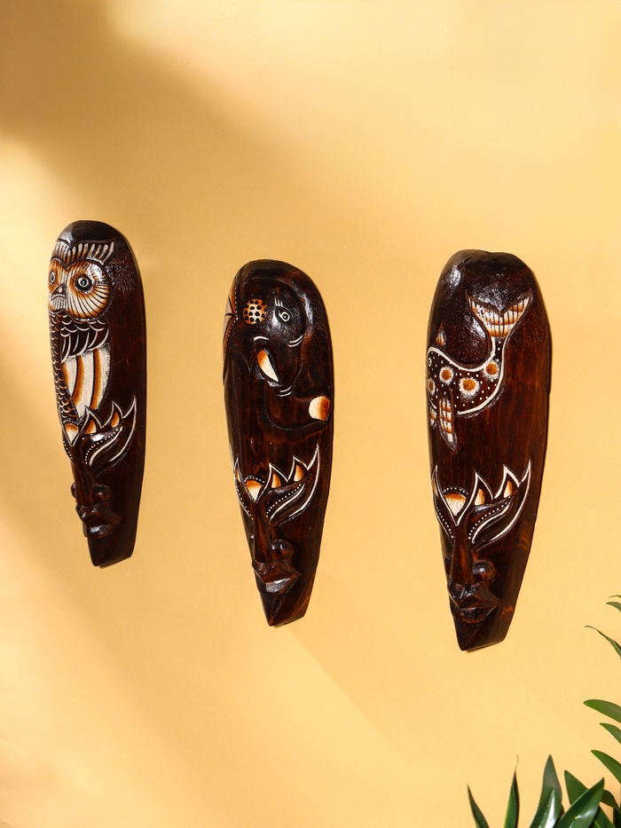 Маска настенная «Абориген коричневый со слоном», 3×12×100 см, дерево