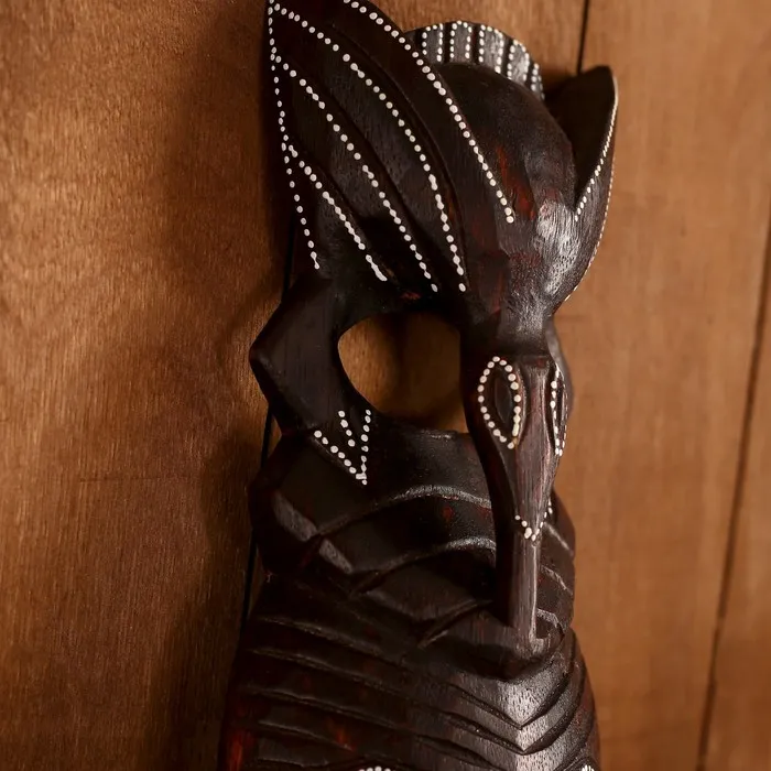 Почувствуйте себя настоящим аборигеном, устройте тематическую вечеринку в кругу родных и близких, украсьте интерьер соответствующими аксессуарами и не забудьте про наряд. И кстати… такая маска «Абориген», 50×14×5 см, дерево будет как раз в тему! Она выполнена из натурального экологически чистого дерева, каждая деталь, каждый рубец выполнялся вручную индонезийскими ремесленниками. Не у каждого найдется такая уникальная маска! Ведь ее можно повышать на стену, словно панно, привнеся нотки экзотики в Ваш дом.