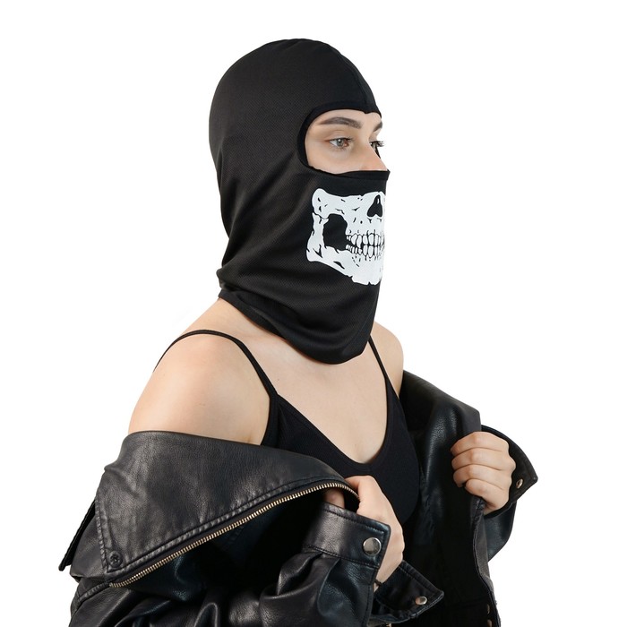 Защитная маска-балаклава подходит для занятий зимними видами спорта. Также этот головной убор можно носить под мотоциклетным шлемом. Такой аксессуар защитит кожу от обветривания, полностью закрытая до плеч конструкция не позволит ветру или снегу попасть под одежду.