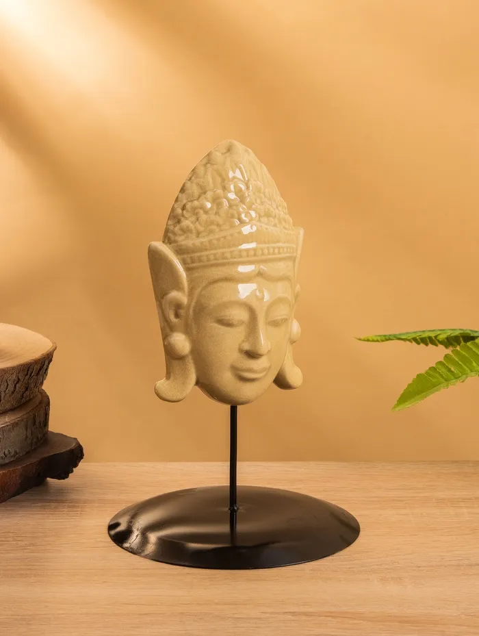 Маска «Будда», на подставке, 14×14×22 см, керамика, бежевая