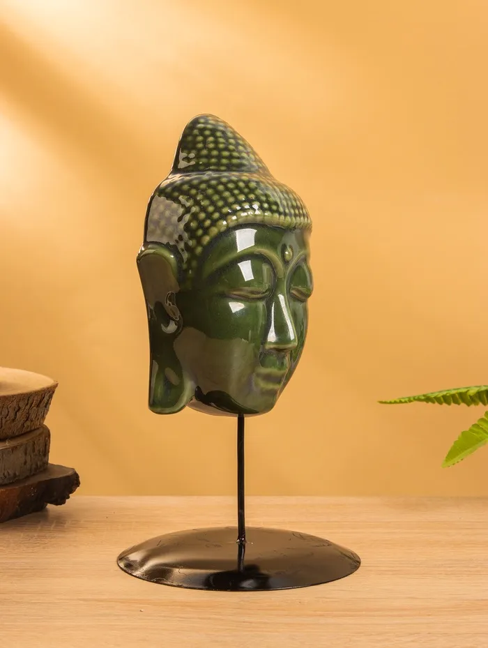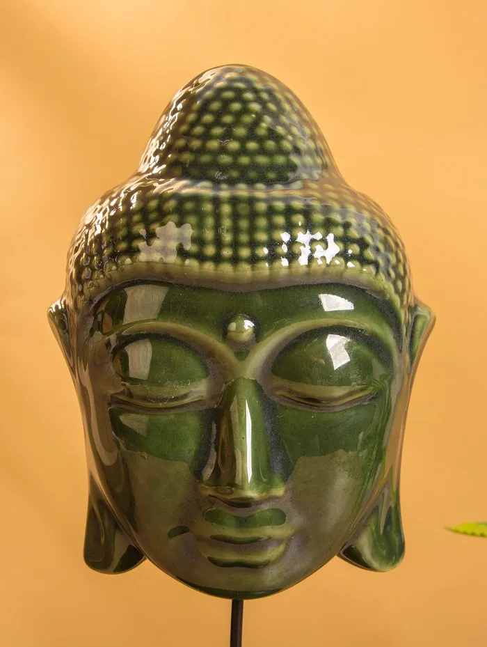 Маска «Будда», на подставке, 14×14×26 см, керамика, зелёная — Характеристики