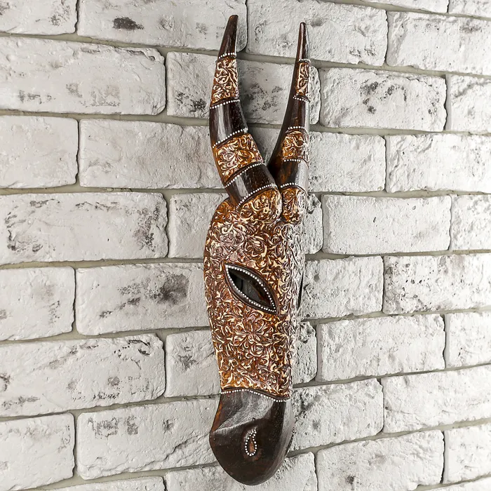 Почувствуйте себя настоящим аборигеном, устройте тематическую вечеринку в кругу родных и близких, украсьте интерьер соответствующими аксессуарами и не забудьте про наряд. И кстати… такая маска «Буйвол», 50×14×5 см, дерево будет как раз в тему! Она выполнена из натурального экологически чистого дерева, каждая деталь, каждый рубец выполнялся вручную индонезийскими ремесленниками. Не у каждого найдется такая уникальная маска! Ведь ее можно повышать на стену, словно панно, привнеся нотки экзотики в Ваш дом.
