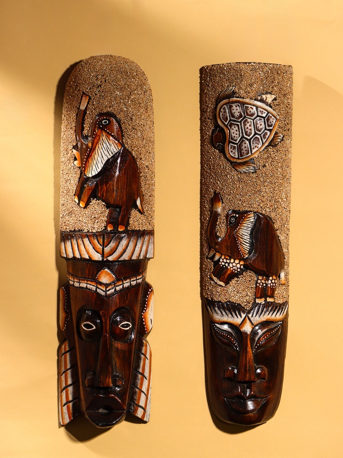 Маска дерево "Абориген и слон" 50х12х4 см МИКС