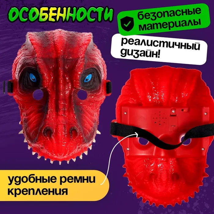 Маска динозавра «Юрский период» с эффектами — это не просто аксессуар, а целый мир доисторических приключений. Световые и звуковые сигналы превращают обычную игру в захватывающее путешествие во времени.