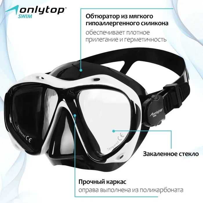 Маска для дайвинга ONLYTOP, цвет чёрный/белый — Характеристики